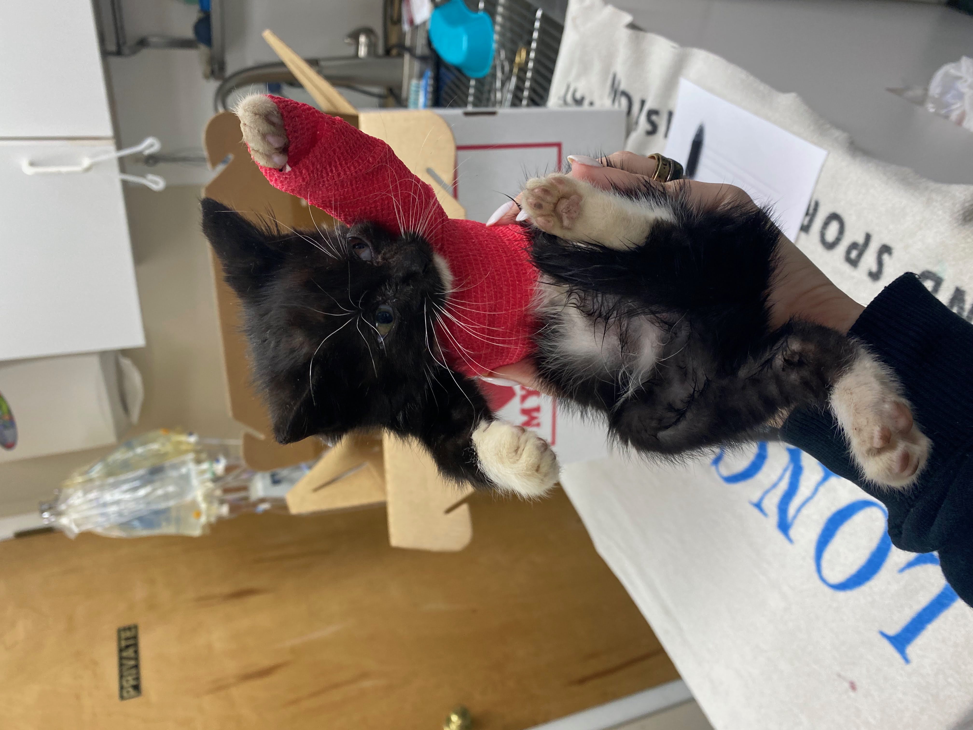 Meet Gohan, a sweet black and white kitten who came to Integrative Veterinary Therapies through the TNR program with a severe physical injury. Despite his pain, this brave little guy greeted everyone with purrs and gentle head bumps, showing us just how strong and loving he really is. It was clear he needed urgent help, and thanks to the care administered by Integrative Veterinary Therapies via the Paws and Heroes Legacy Foundation, Gohan was given the chance to get the surgery he so desperately needed.